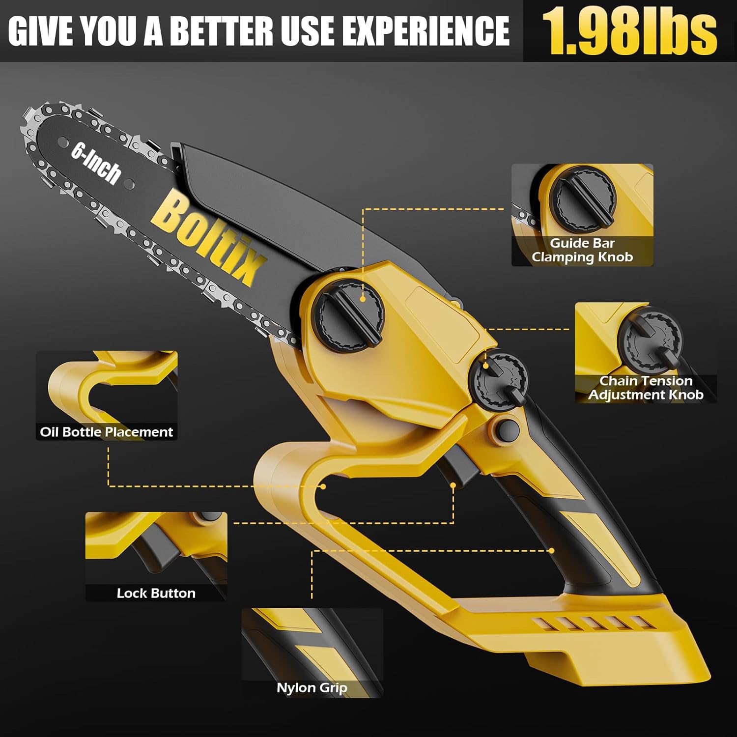 One of the most remarkable features of the Boltix Mini Chainsaw is its DEWALT compatibility. Although the package does not come with batteries included (they need to be purchased separately), this flexibility allows users already invested in DEWALT power systems to maximize their existing batteries. It’s an economical choice for those who prefer to save on extra expenses while maintaining a seamless workflow.
